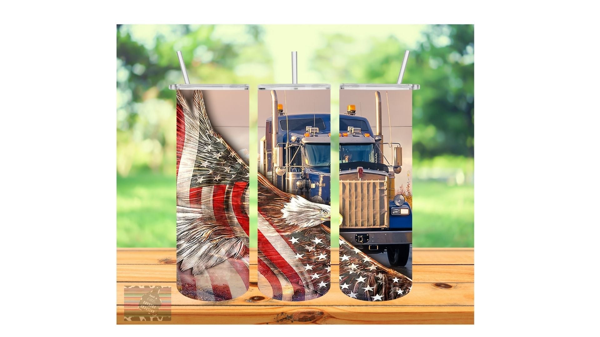 Roll in with the American Trucker! This 20 oz tumbler is truckin' ready, boasting a double walled and vacuum insulation construction to keep your drinks at a comfortably cool temp. Plus, the sublimated design highlights the fine detail and style of American truckers you know and love. So hit the road and keep your beverages in good company.