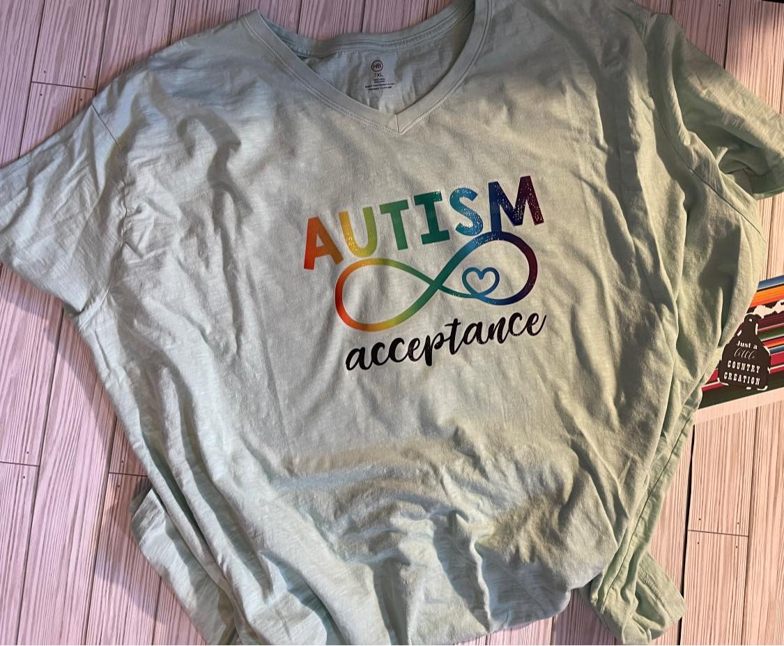 This Autism Acceptance T-shirt is perfect for showing your support! Soft 50/50 blend of cotton and polyester, each shirt features a sublimated design and is printed on a light colored t-shirt. Delivery to boutique or your door step via USPS in 7-10 days. Show your support and order yours today!