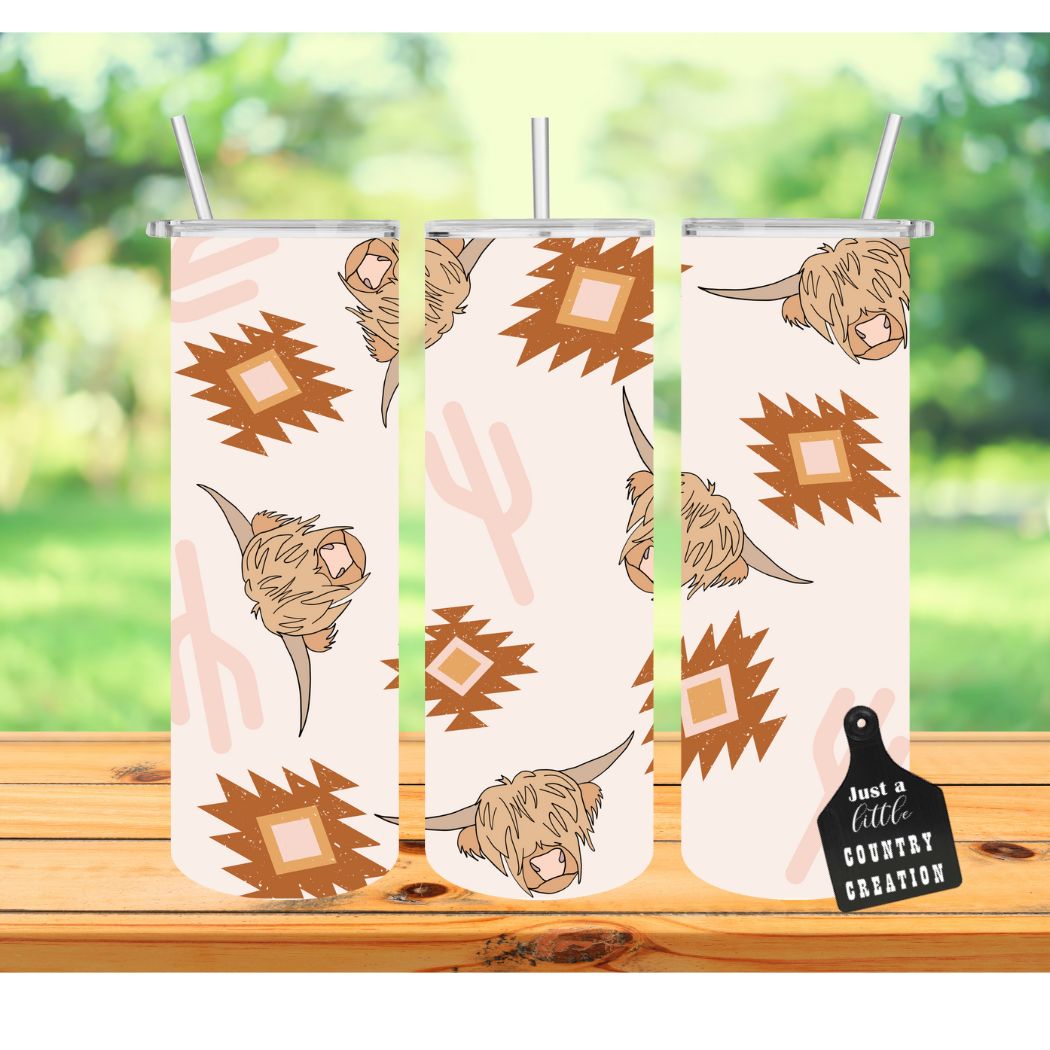 Catch a dose of western flair with our BOHO HIGHLAND tumbler! This 20 oz. double-walled and vacuum-insulated tumbler is custom-designed with a Highland cow in its signature boho pattern, sure to heat up your style game. Now you can enjoy your favorite beverage without worrying about melting ice! Yeehaw!