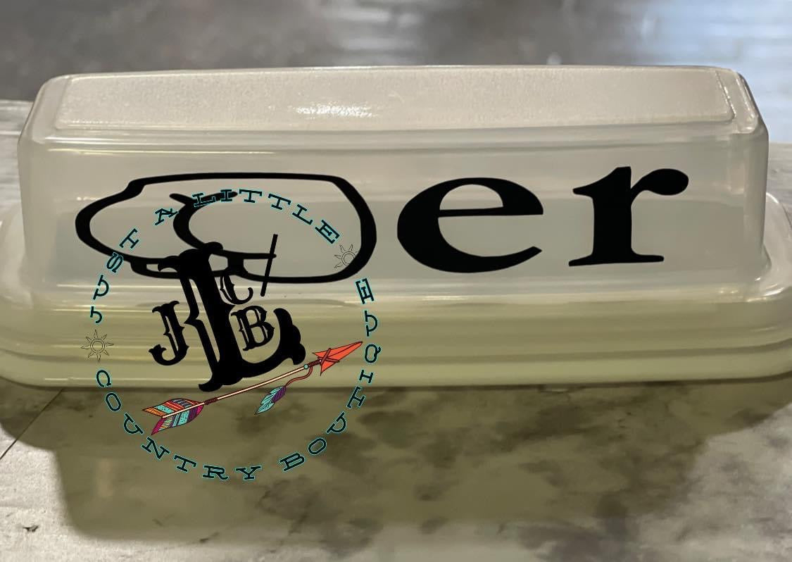 If you're looking for a storage solution that's a real "Butt-er" of a dish, then this is the one for you! White with a funky vinyl design, it's the ideal place to keep your go-to spread. With its quirky jokester motif, it'll make you grin every time you reach for the butter!