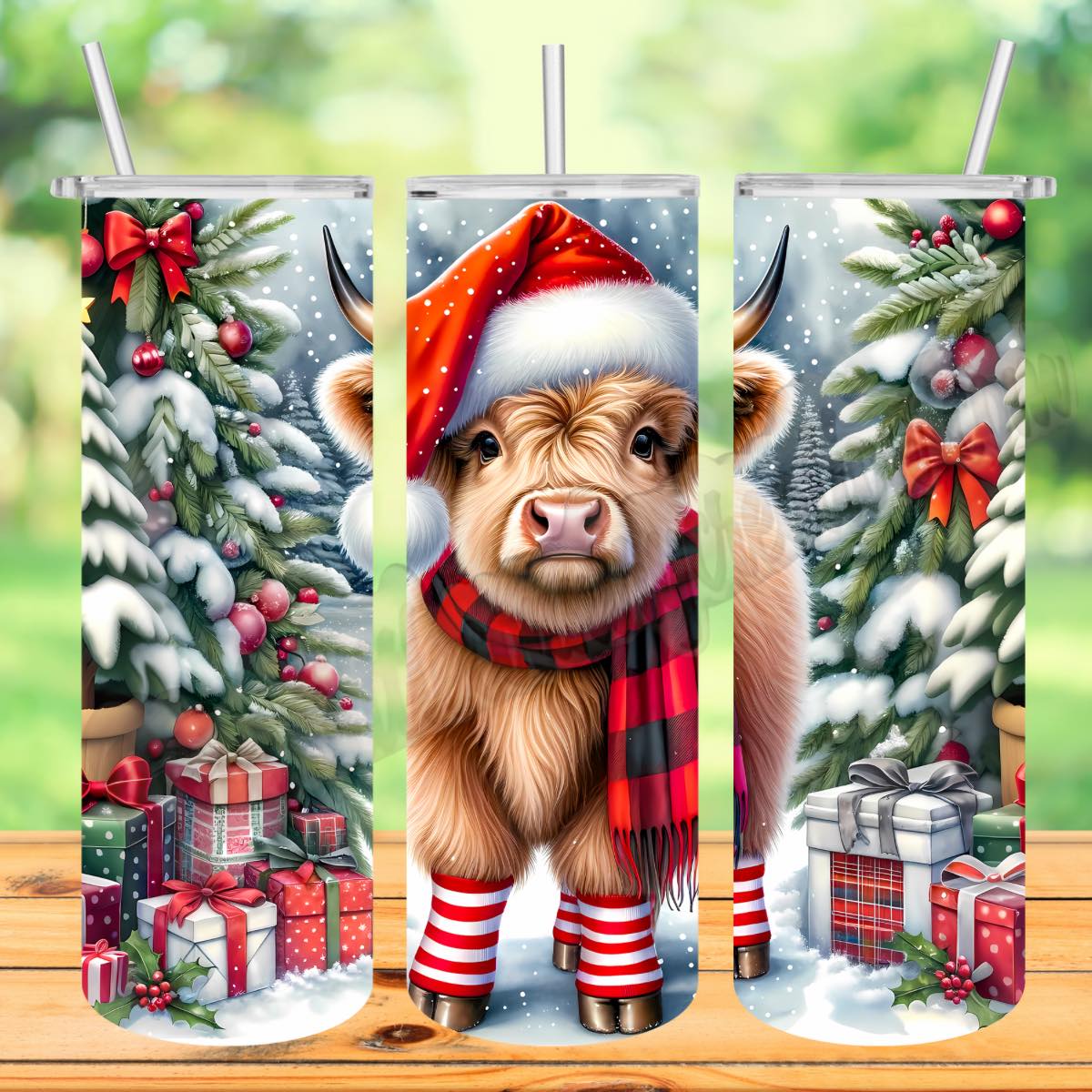 Enjoy your favorite hot or cold beverage out of this festive heat-resistant tumbler! Sporting a Christmas Highland design, 'tis the season to sip with a little attitude! Show off your style and your sense of humor with this cute sublimated tumbler.