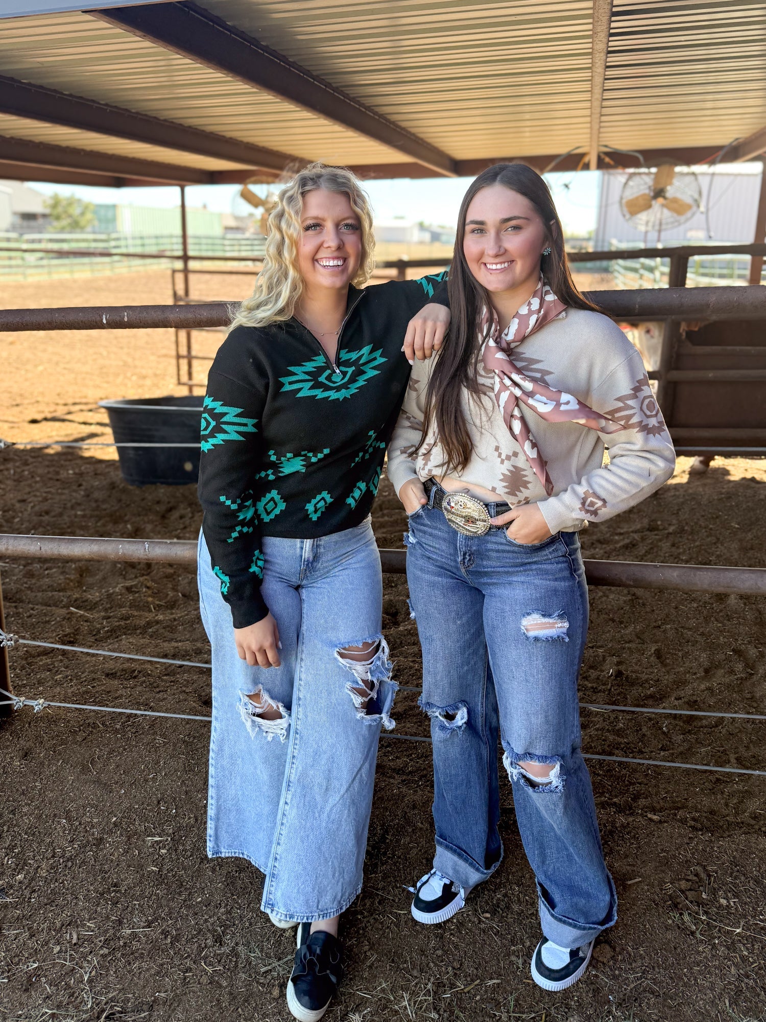 Soft, subtle, and western to the core. The CREAM Calhoun Pullover features a monochrome Aztec pattern that adds just enough detail without going over the top. Lightweight, comfortable, and easy to dress up with a wild rag or favorite jewelry.