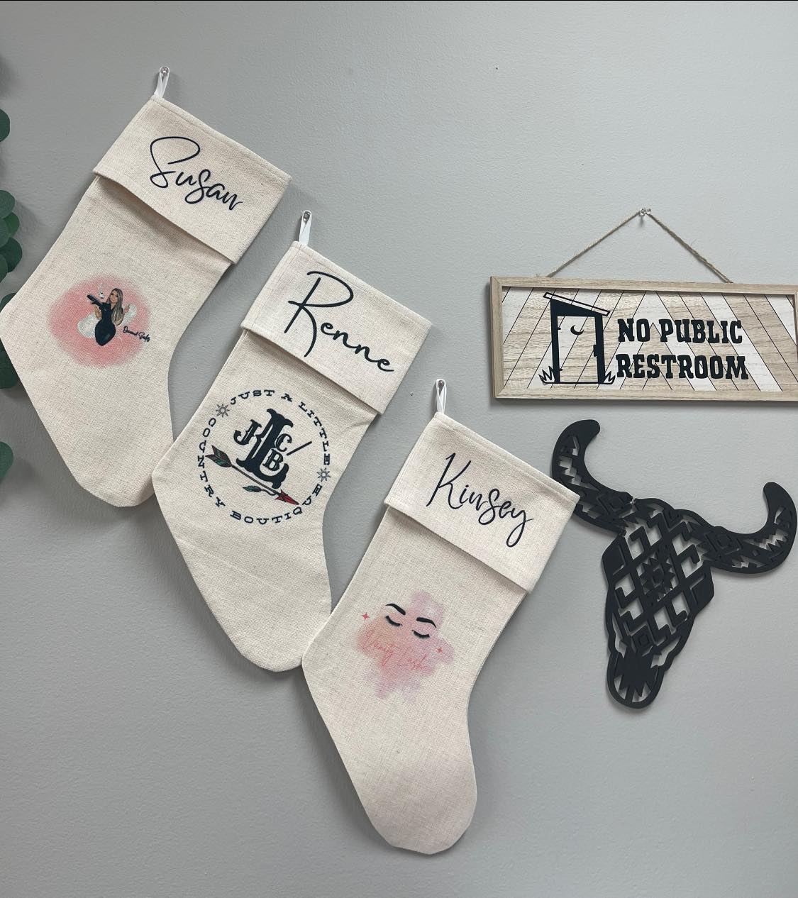 This Custom sublimated Christmas Stocking has a burlap feel that'll warm your heart, and a 4.72” cuff to keep all your goodies safe and sound. With a length of 8.66” from toe to heel, it's sure to make Santa say "HOLY MOLY!"