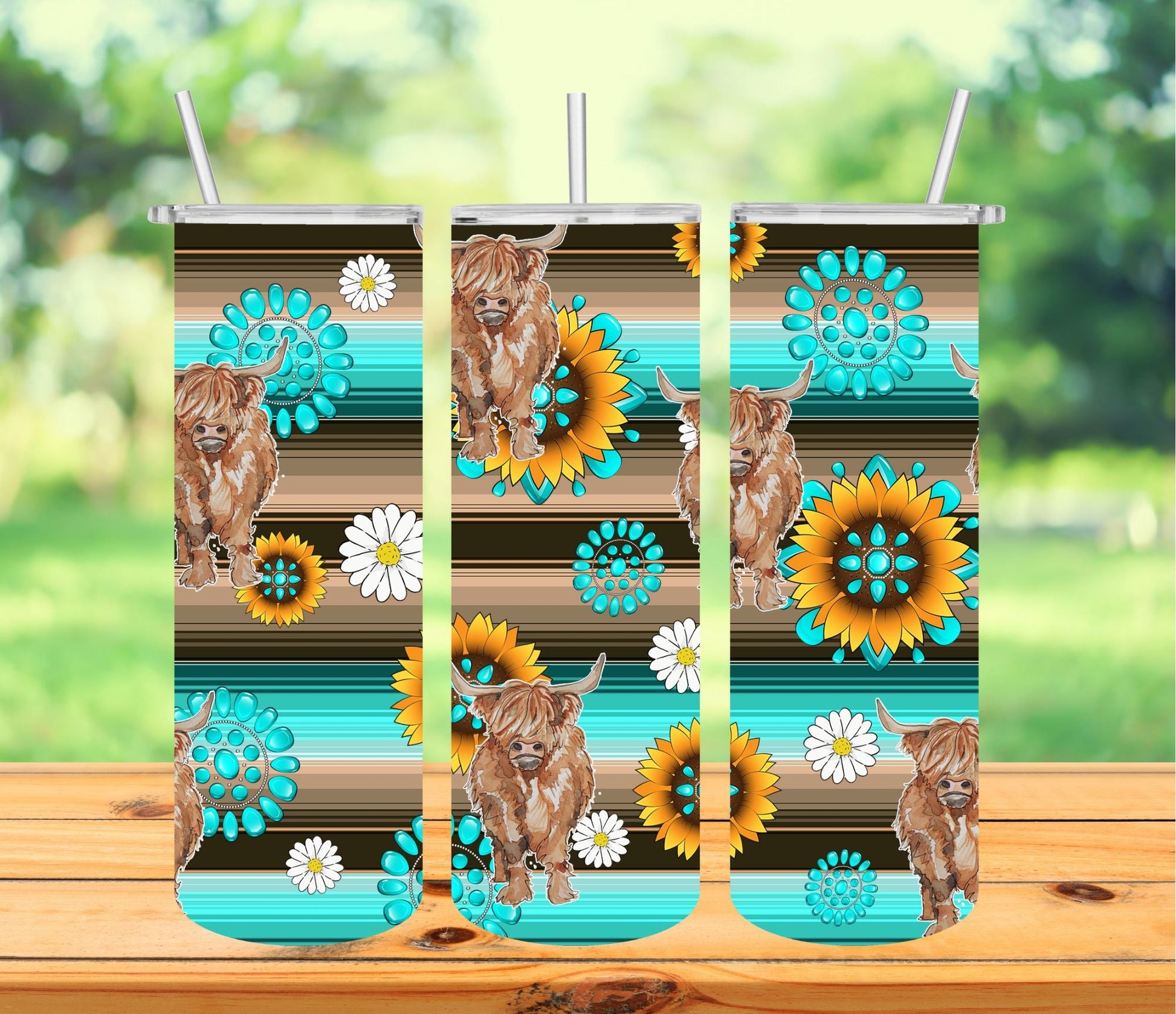 Sip your favorite beverage in style with this 20-oz tumbler featuring a turquoise, sunflower, and desert serape print of a Highland Cow! Not too girly, this tumbler is perfect for the adventurous soul looking to change up their style. So, grab your Desert Sand tumbler and enjoy the journey!