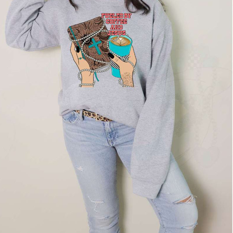 Stay comfortable and stylish with our Fueled by Coffee and Jesus t-shirt or sweatshirt. Choose from a variety of colors and rock a western look while showing your love for caffeine and the man above. Keep it cozy, keep it quirky, keep it you!