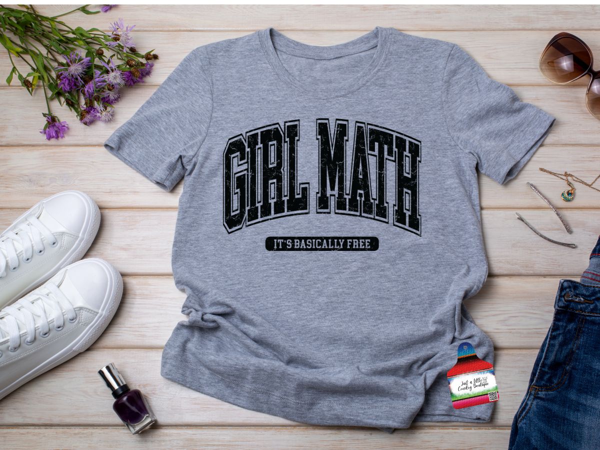"Unleash your inner mathlete with GIRL MATH! This versatile and cozy sweatshirt or soft t-shirt is perfect for adding a touch of shopping humor to your wardrobe. Stay comfortable while showing off your love for numbers and fashion. Add some GIRL MATH to your closet today!"