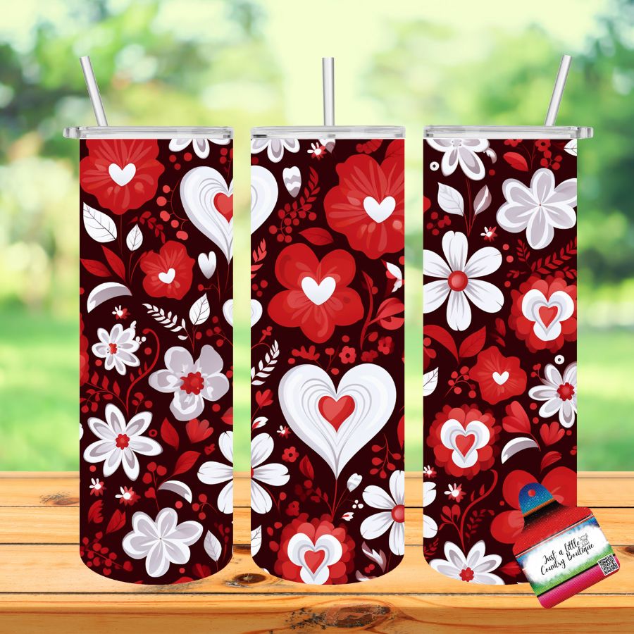 This beautiful tumbler features a sublimated design of flowers and hearts, making it the perfect gift for Valentine's Day. The black and red colors add a touch of elegance. Sip in style with this Heart of Flowers tumbler.