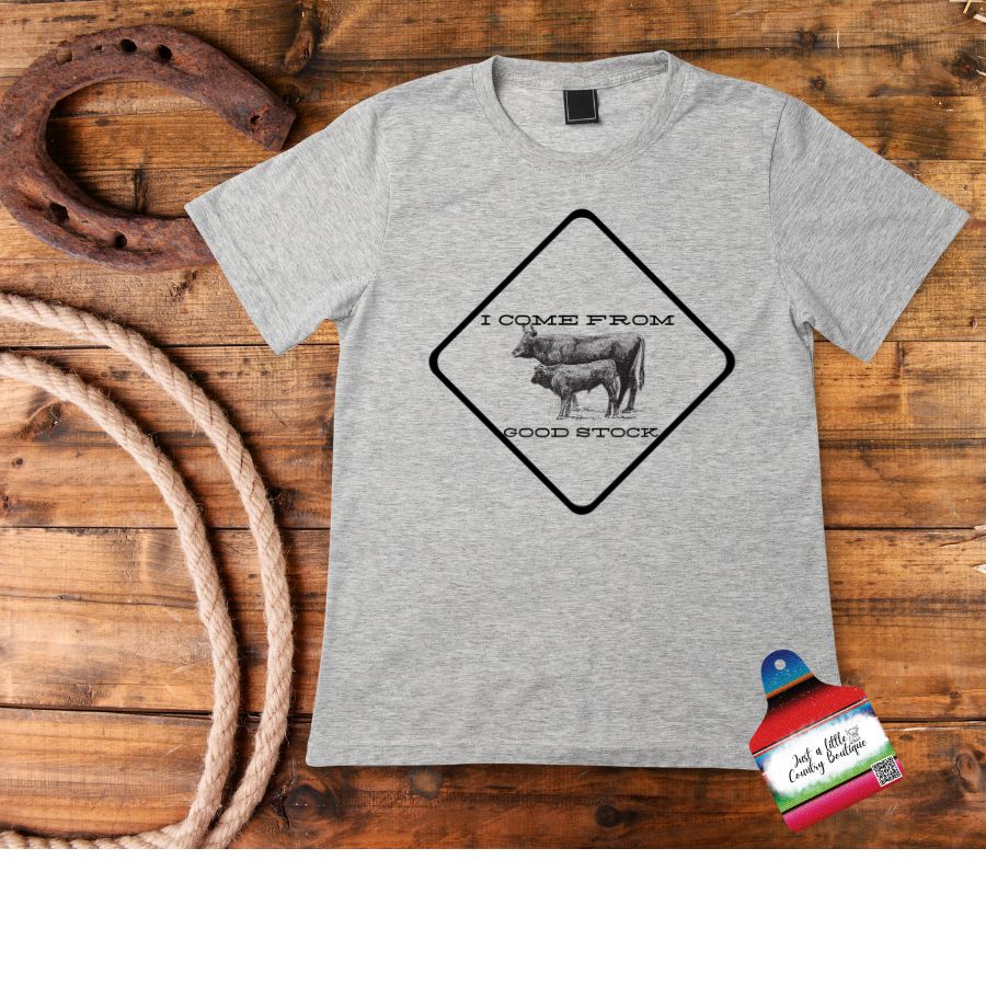 "Get ready to spice up your wardrobe with I Come from Good Stock! This ranch kid inspired design is clear DTF ( direct to film) or down to farm and oh-so-cute. Show off your playful side with this unique and quirky addition to your style!"
