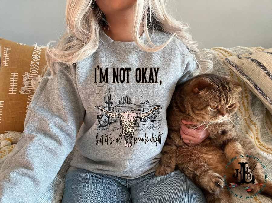 Embrace the comfort of our soft grey sweatshirt, accompanied by a gentle reminder that it'll all be alright. Let this quirky piece bring a smile to your face and a sense of calm to your day. Don't sweat the small stuff, just cozy up and remember... it's gonna be alright!