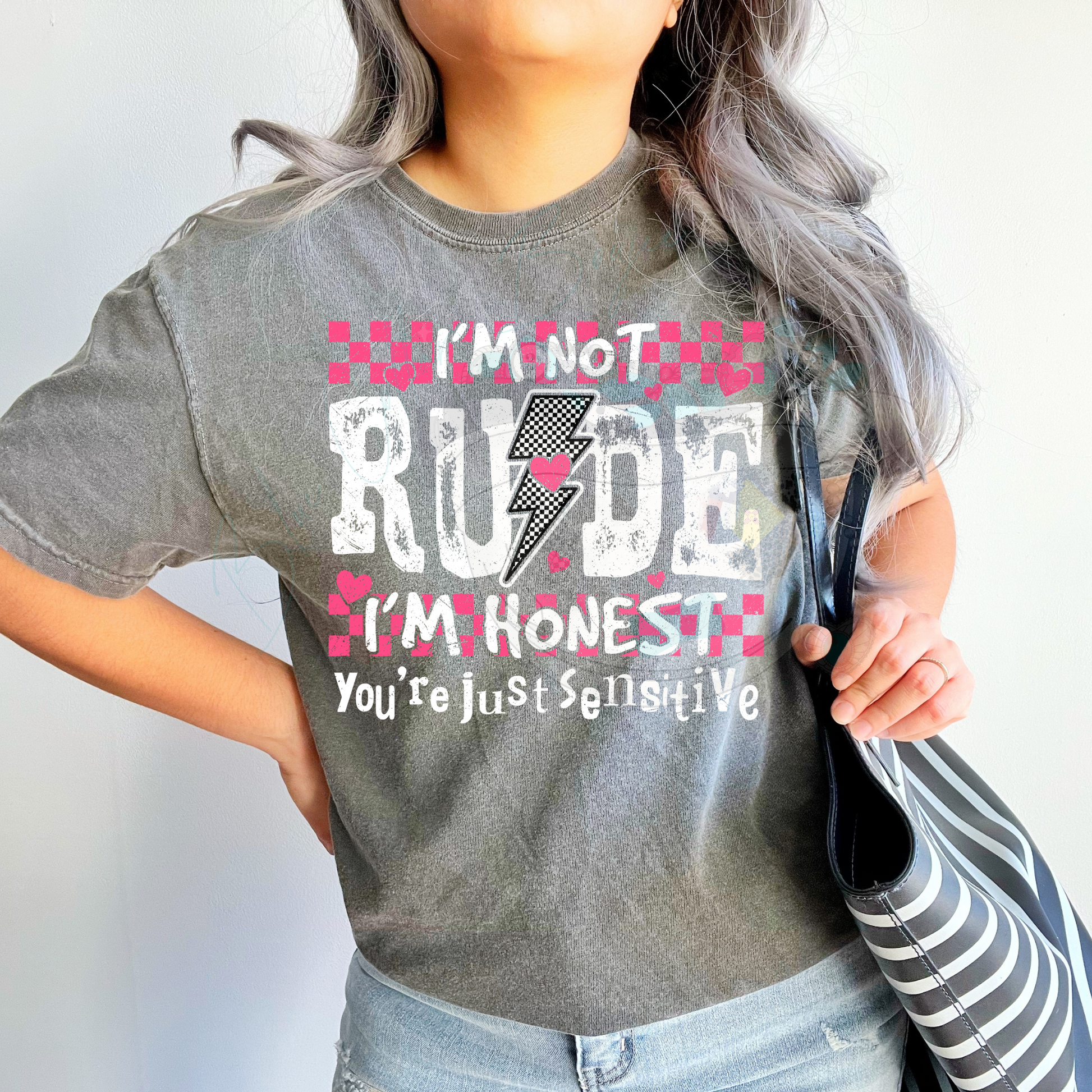 Unleash your playful side with our 'I'm not rude, I'm Honest' unisex tshirt. Choose your favorite color and make a statement with the bold DTF print that declares your honesty in the face of sensitivity. Soft and comfortable, this tshirt is perfect for those who don't take themselves too seriously.
