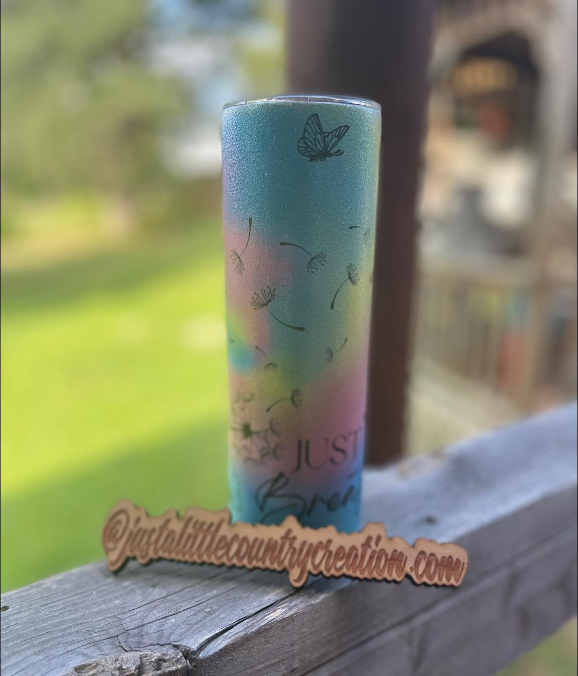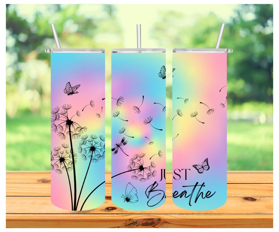 Start your day off right with the JUST BREATHE tumbler. Double walled and vacuum insulated, your drinks stay hot for up to 6 hours and cold for 10, while its no-sweat design keeps your desk tidy. Plus, it features a beautiful, bright design to brighten your day and remind you to just breathe.