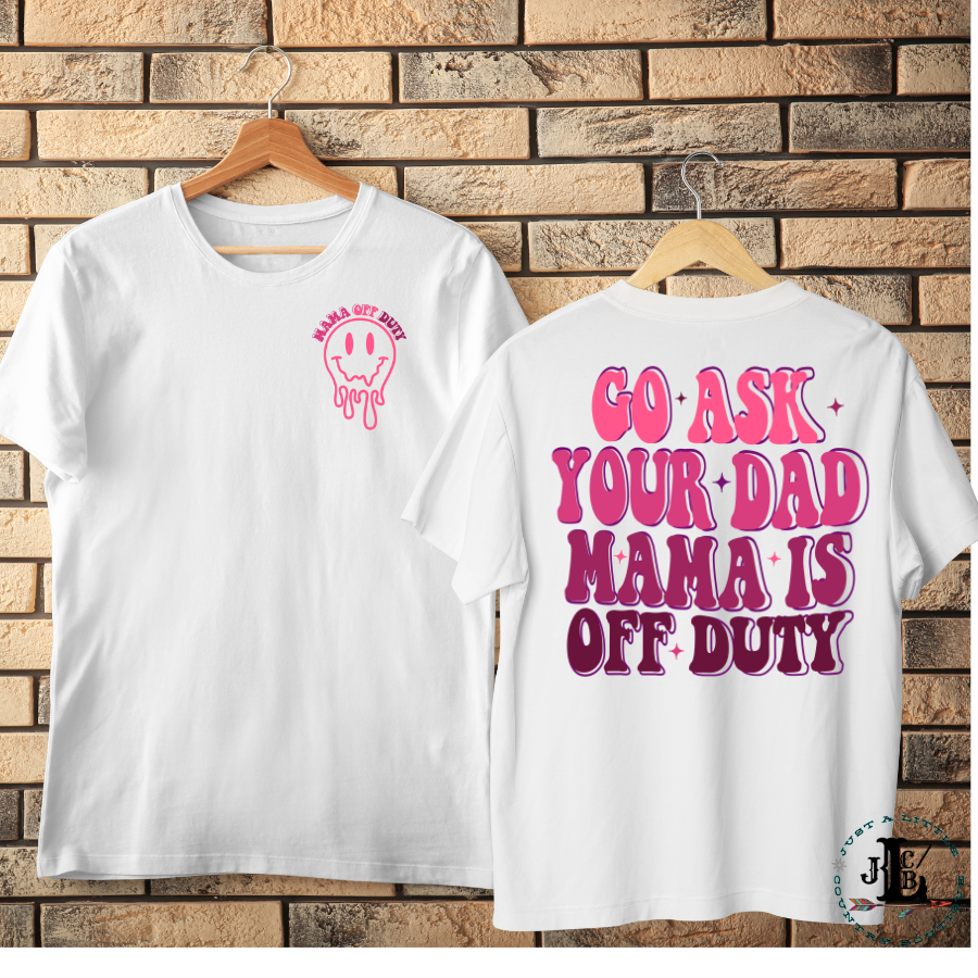 Unleash your inner mom boss with our Mama is off duty! t-shirt. Made with a comfortable blend material and featuring a playful DTF print, this cute tee is perfect for any busy mama. Can't get enough? It's also available in hoodie form! (Hoodies take 7-10 days to ship, so plan accordingly).