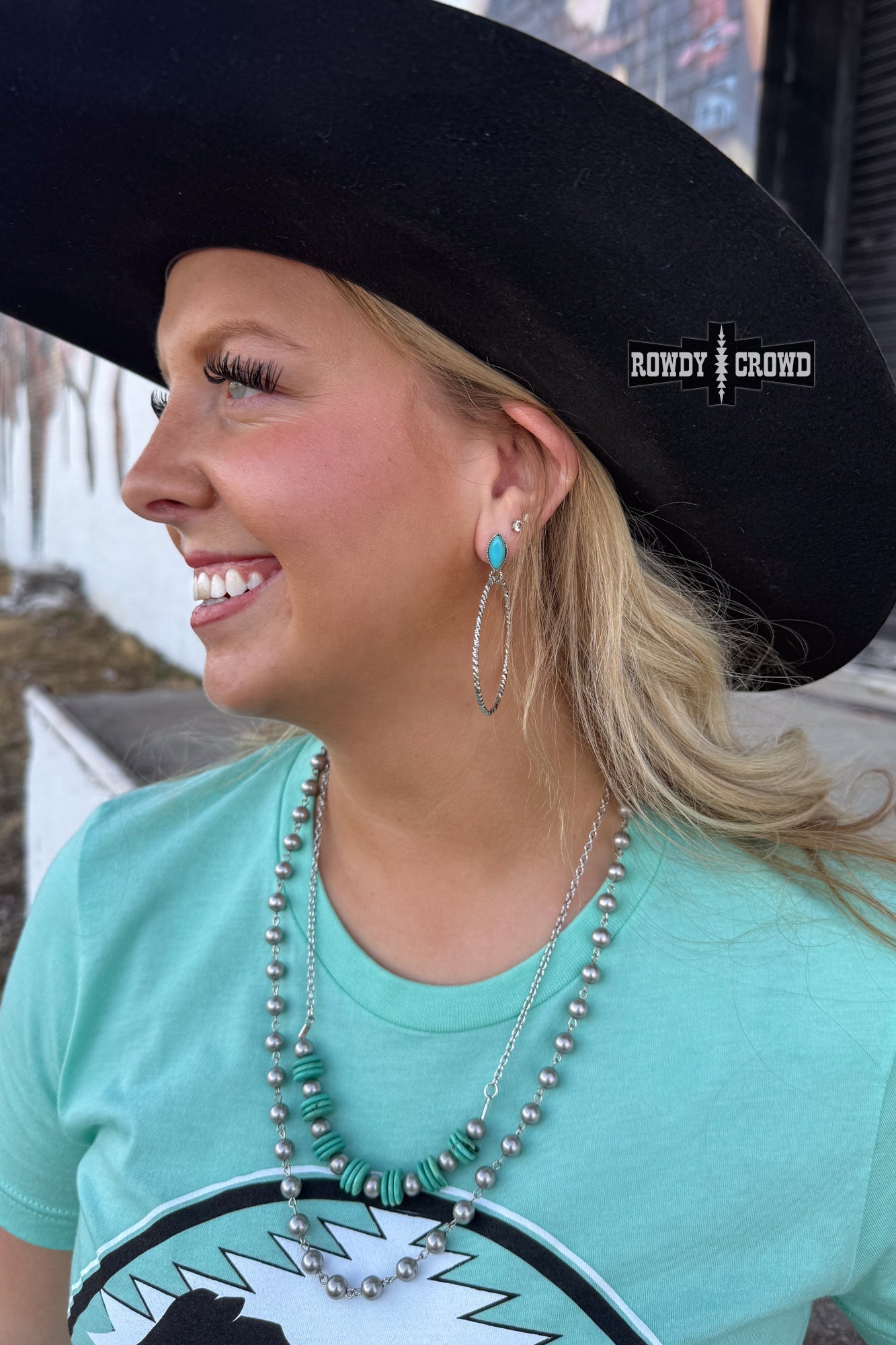 The Monterey Hoops feature a vibrant oval turquoise stone paired with a twisted silver hoop that gives just the right amount of western edge. Designed with a secure post back, they're bold without being heavy and made to move with you from market days to girls’ night.