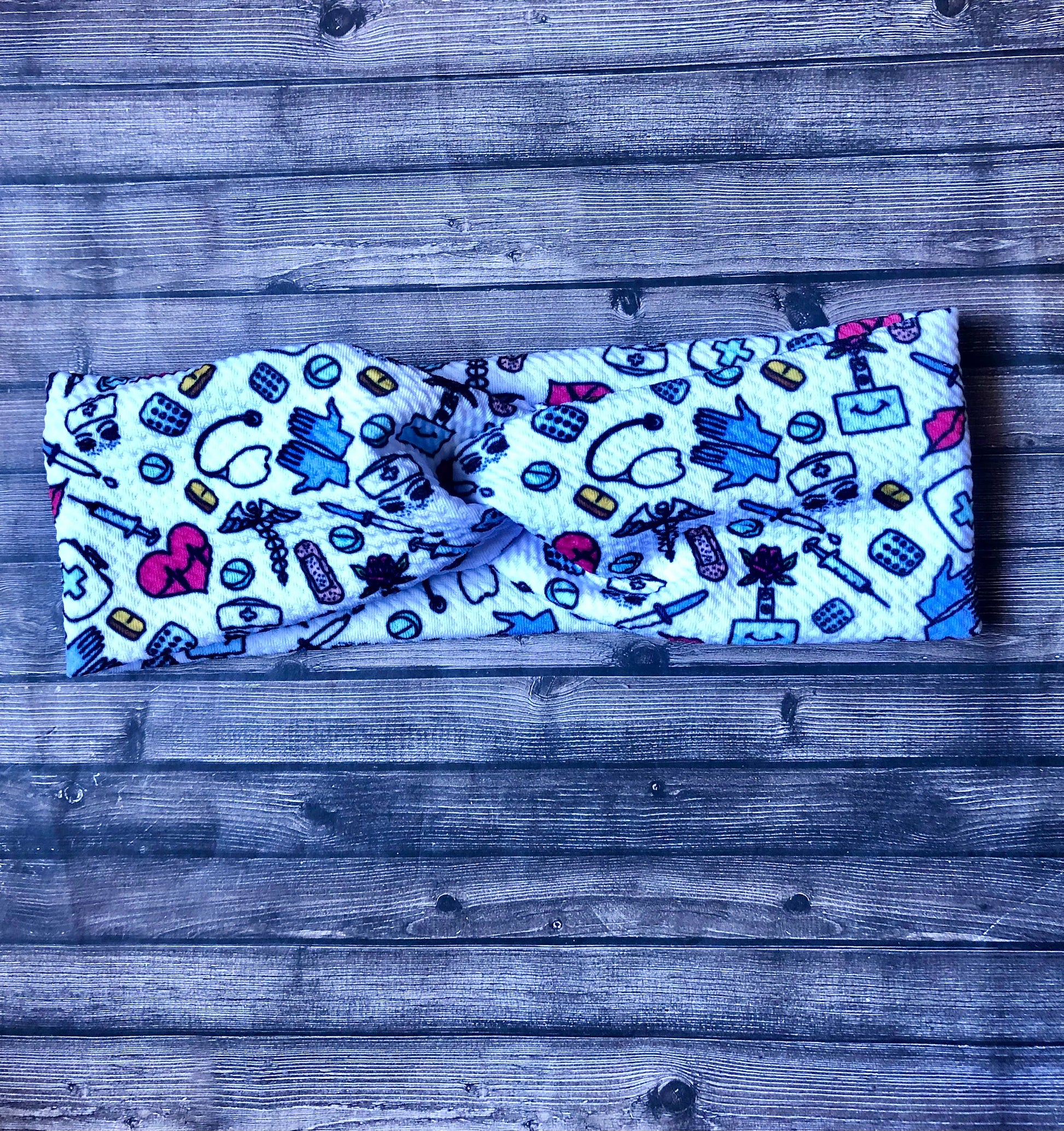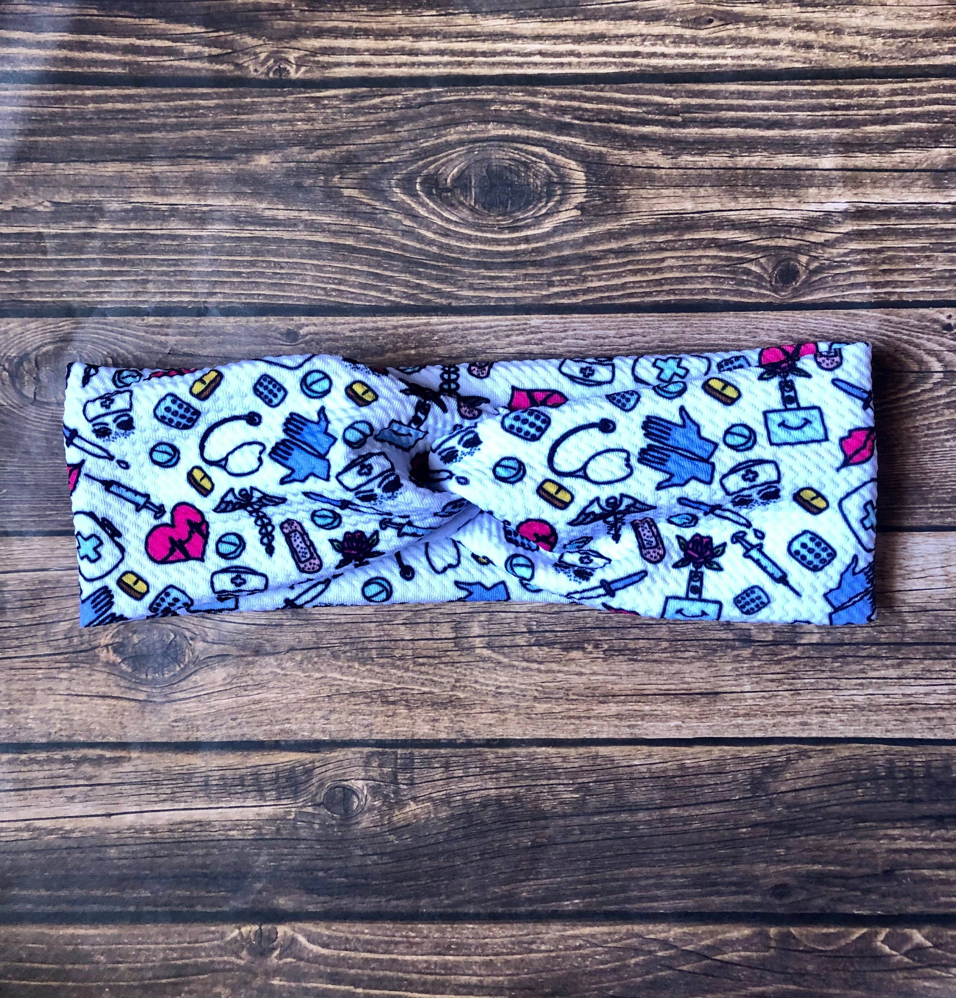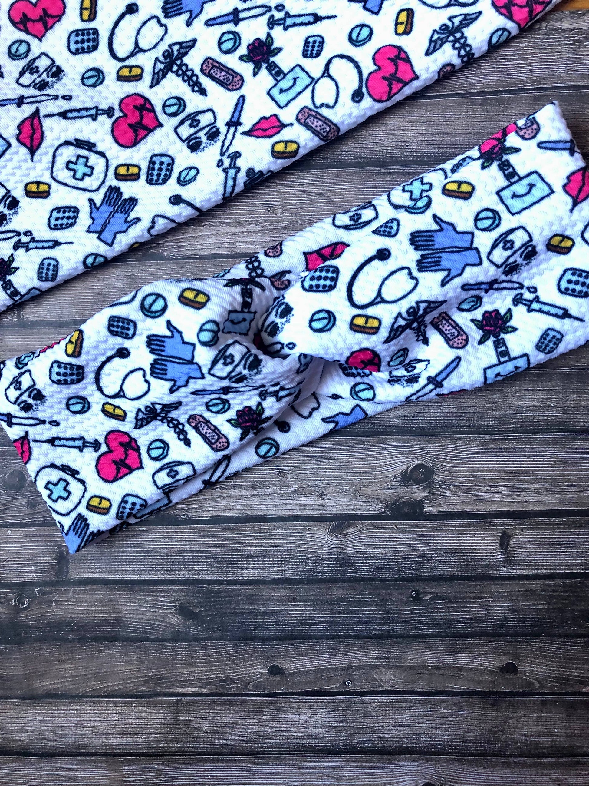 In honor of all of the great people that work in our medical field this is for you! This stretch knotted headband is the perfect hair accessory to keep your hair out of your face at work.