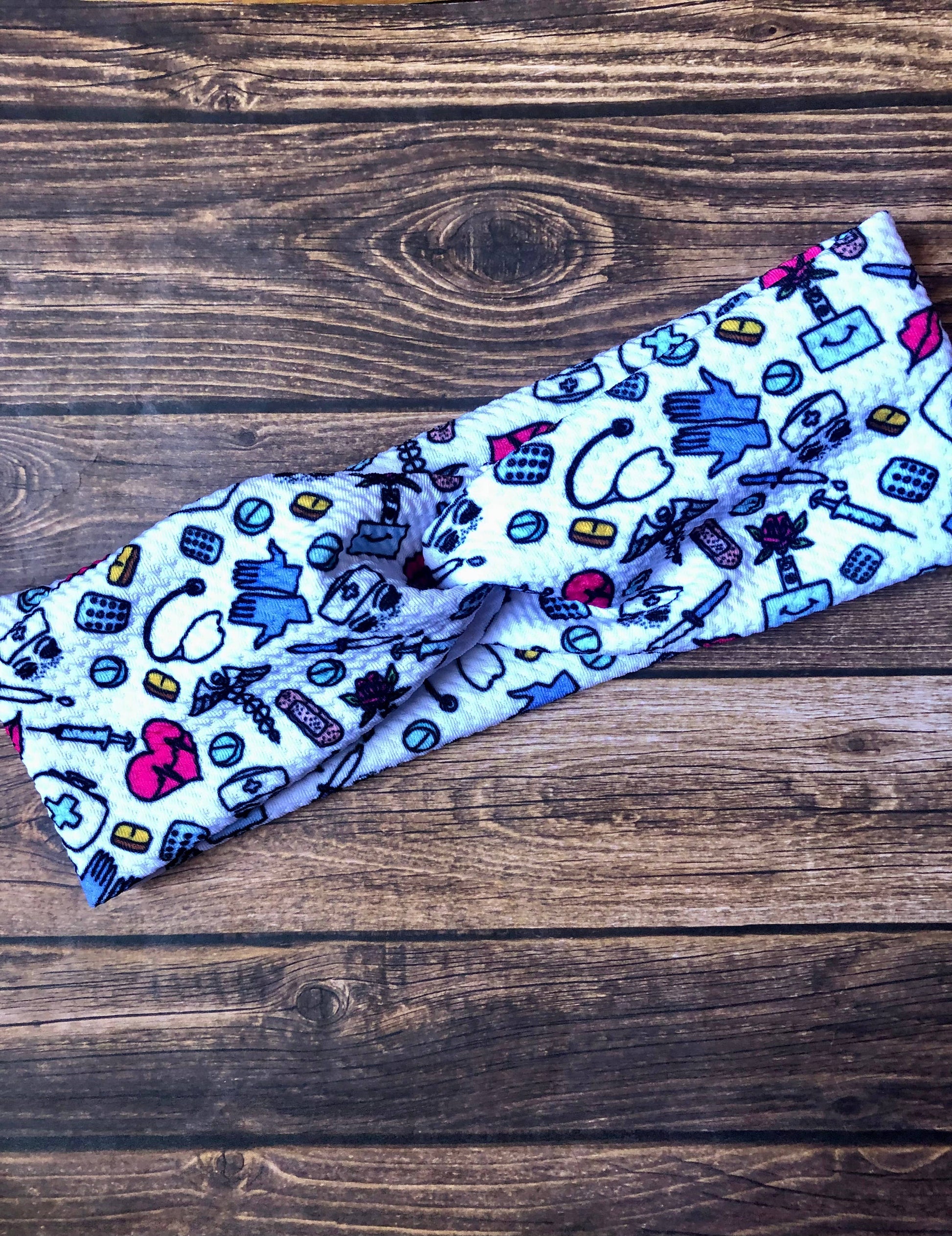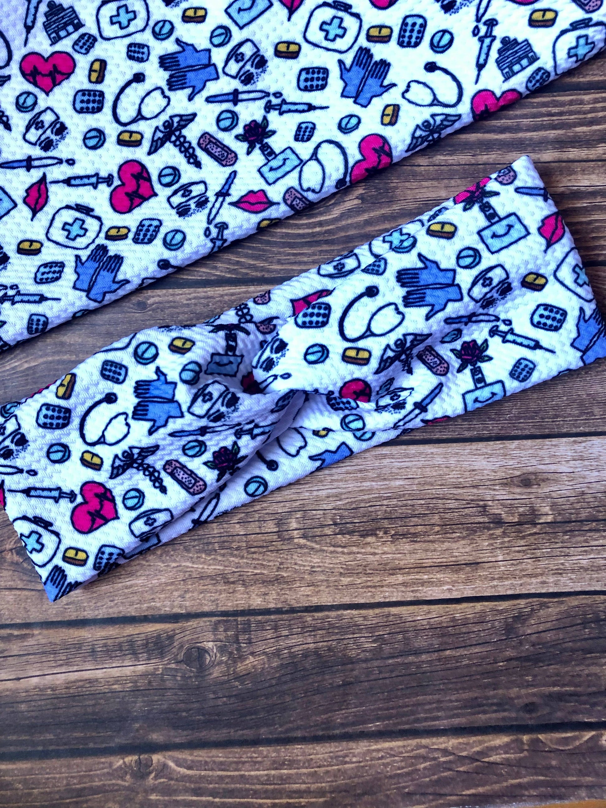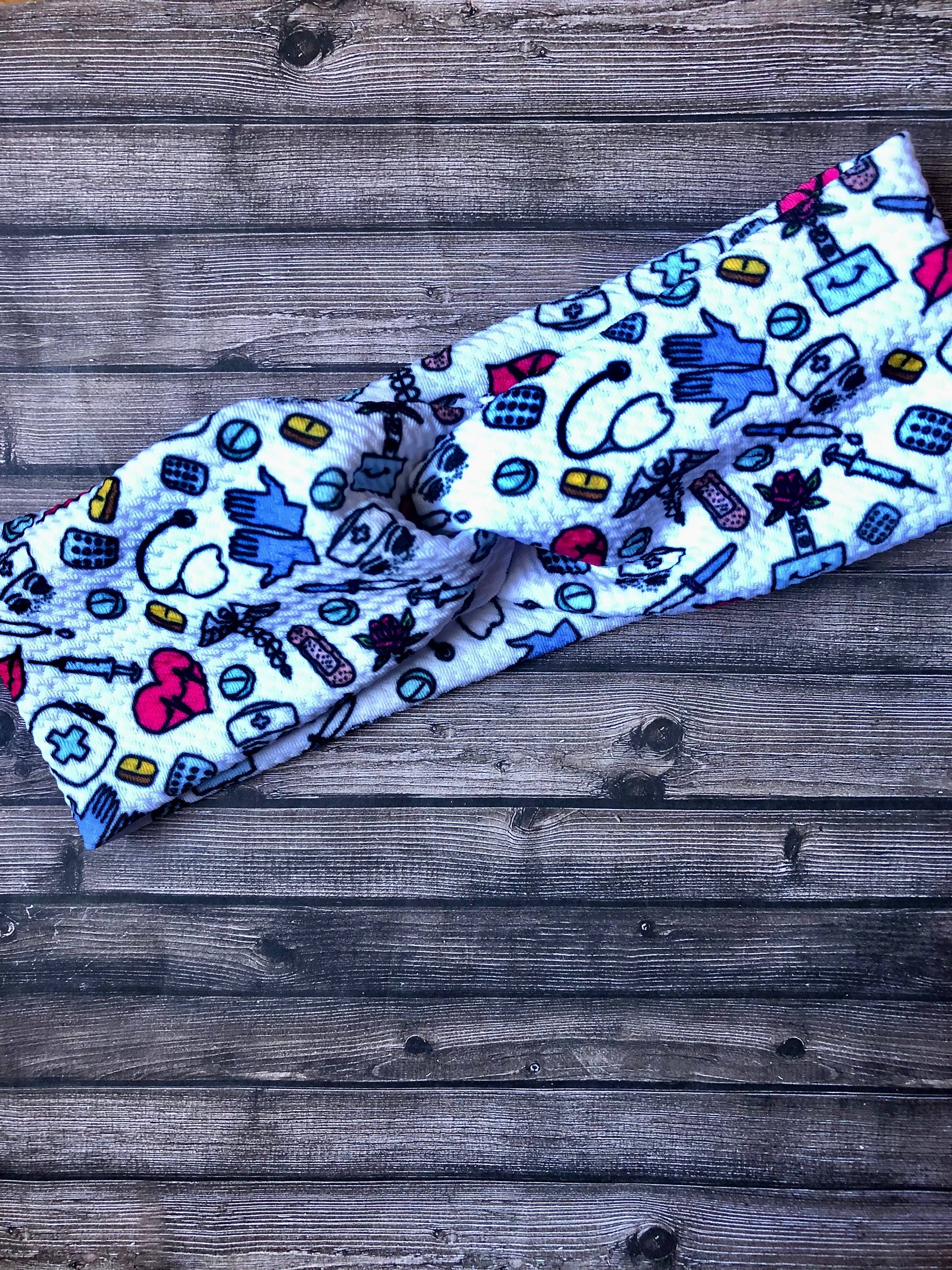 In honor of all of the great people that work in our medical field this is for you! This stretch knotted headband is the perfect hair accessory to keep your hair out of your face at work.