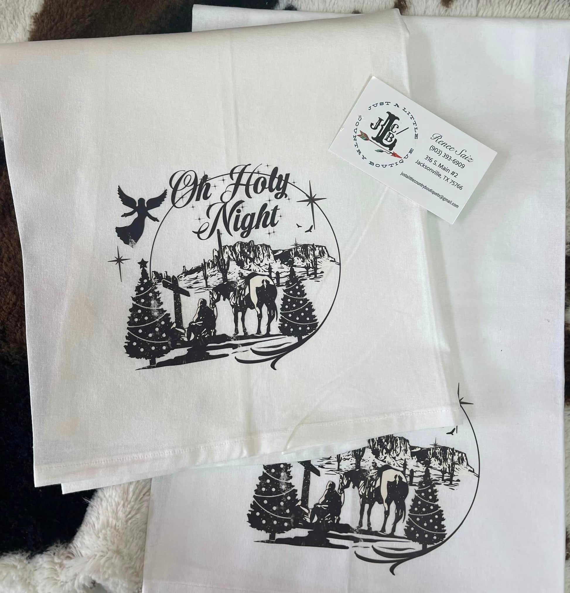 Get festive with Oh Holy Night! These flour sack towels come in a set of 2 and are perfect for adding some western Christmas charm to your home. But be warned - don't let your husband touch them! (Trust us, it's for the best).