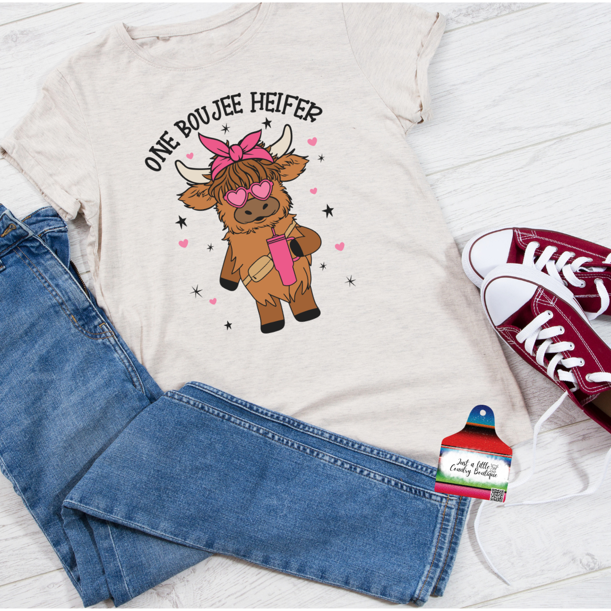 Get ready to be the most boujee heifer on the block with our ONE BOUJEE HEIFER T-shirt! Featuring a cute Highland cow DTF print, this soft and comfy shirt is perfect for showing off your Valentine cuteness. So go ahead, be a little extra and rock this quirky and fun tee!