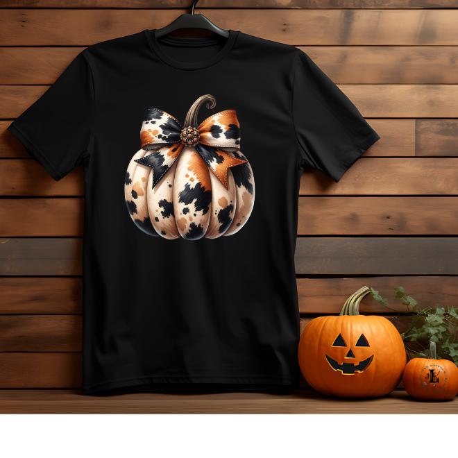 Unleash your inner pumpkin spice with this "Pumpkin moooood" t-shirt. Featuring a cute pumpkin DTF design, this soft t-shirt is perfect for the season. And let's be real, cow print is always in, so you can wear this shirt year-round without missing a beat (or a moo).