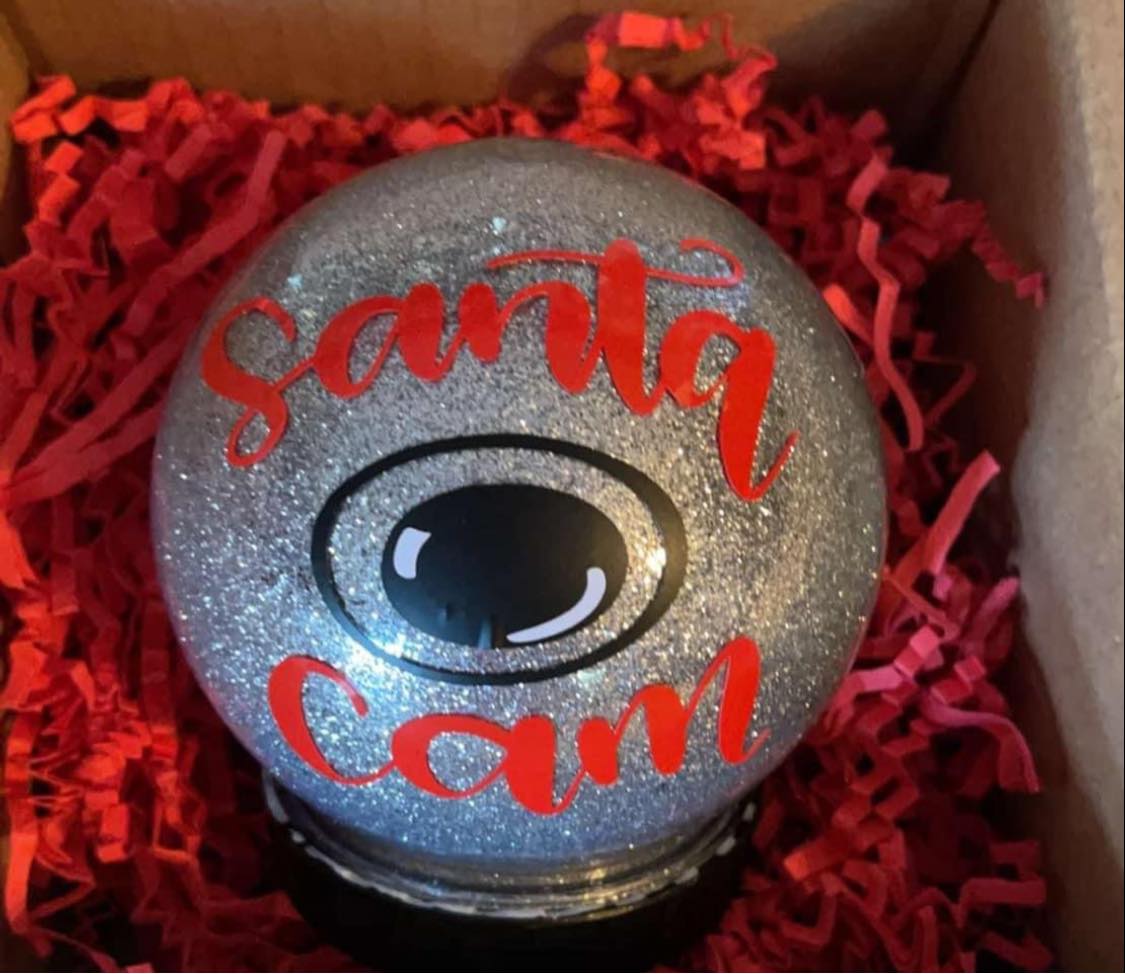 Don't get on the naughty list! Santa has his eye on you with this funky holiday decoration. Each large, glittery ornament has its own unique look and comes with a note from 'ol Saint Nick himself. Who knew Santa had a cam? Check up on your holiday spirit with our Santa Cam! (Email names to Justalittlecountryboutiquetx@gmail.com) be sure to add order number