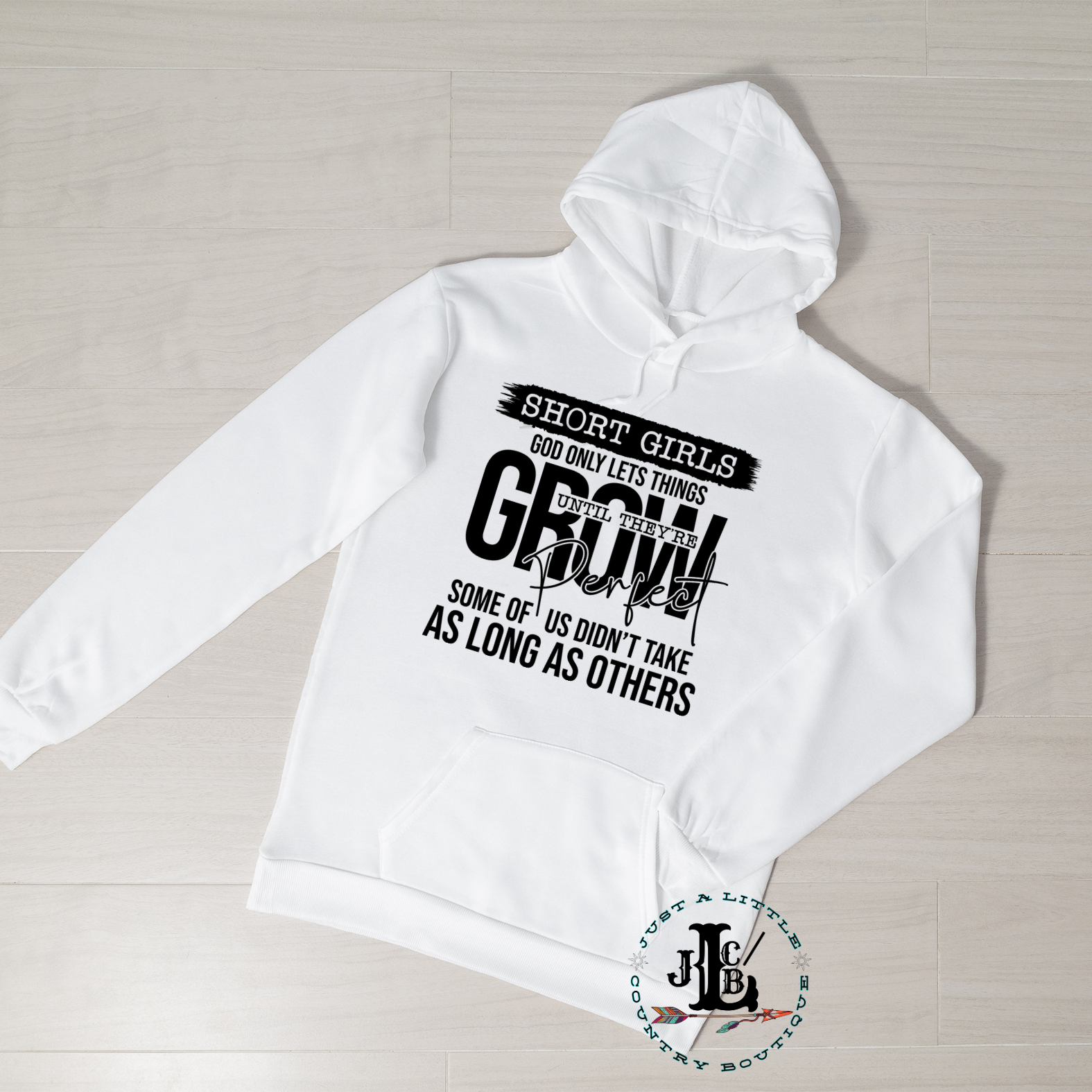 "Embrace your height with our SHORT GIRLS T-shirt or hoodie, made from soft blended material. With a "God stopped at perfection" design, it's perfect for those who are proud of being fun-sized. Available with Dtf or sublimated design options. (Note: Size doesn't matter when you're this cool!)"
