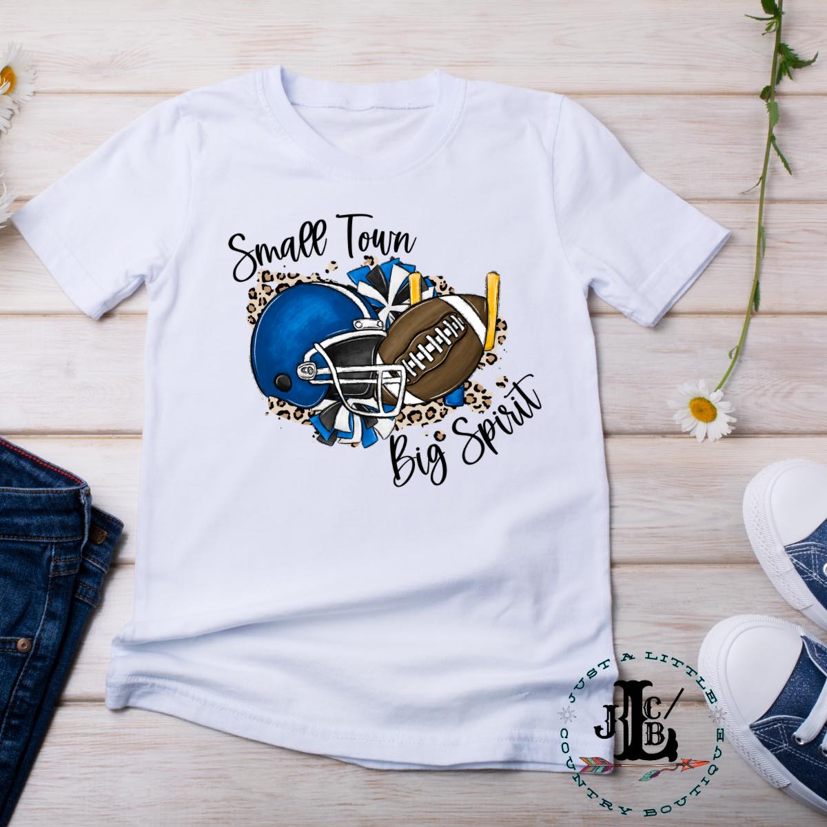 Show off your small town spirit with this soft blended material t-shirt. Perfect for game days and supporting your school team, the choice of helmet color adds a touch of customization. Game on!