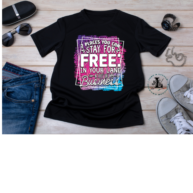 Stay in your lane with this quirky and fun shirt! Made with soft blended material, it's a playful way to tell others to stay out of your business. Perfect for making a statement, the bright DTF print adds a pop of color. (DTF can also stand for "down to focus"!)