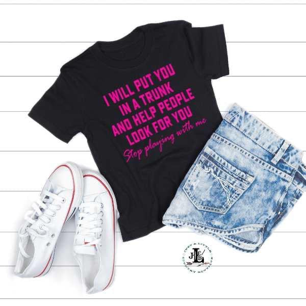 "Playfully remind others to stop playing with you with this soft unisex Tshirt featuring a bold DTF print. Available in various colors to match your style. (Just a friendly tip: note colors on order!)"