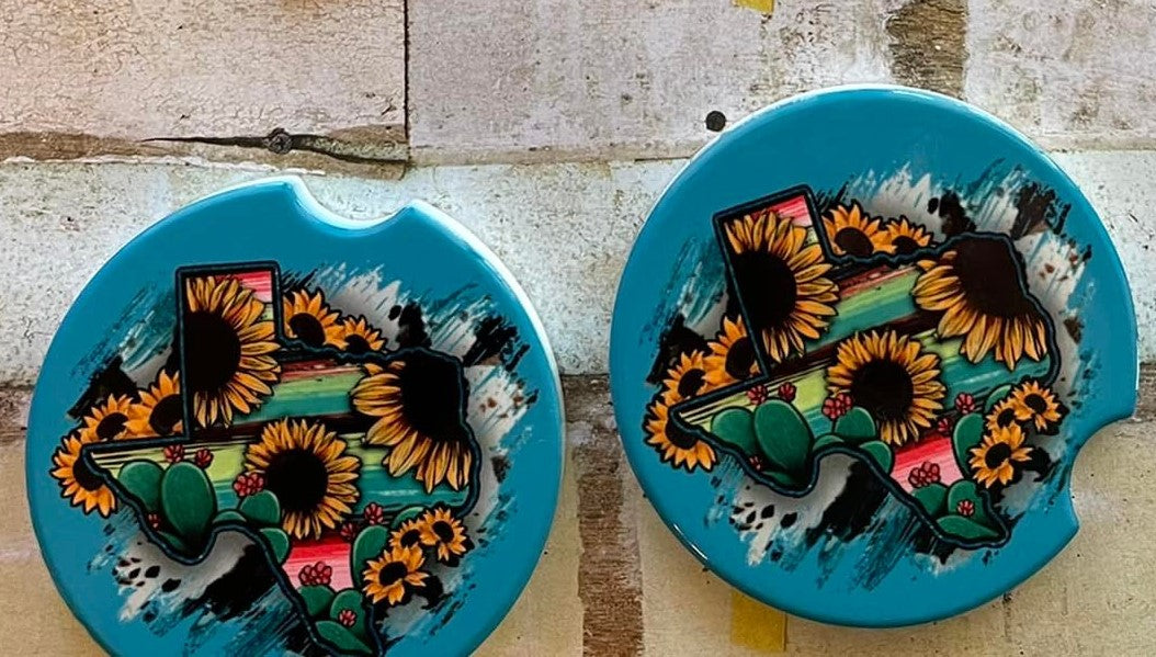 Let these ceramic car coasters, about 2.6 inches in diameter, bless your car with some good ol' Texas charm. Embrace the western flair and show off your love for the Lone Star state.