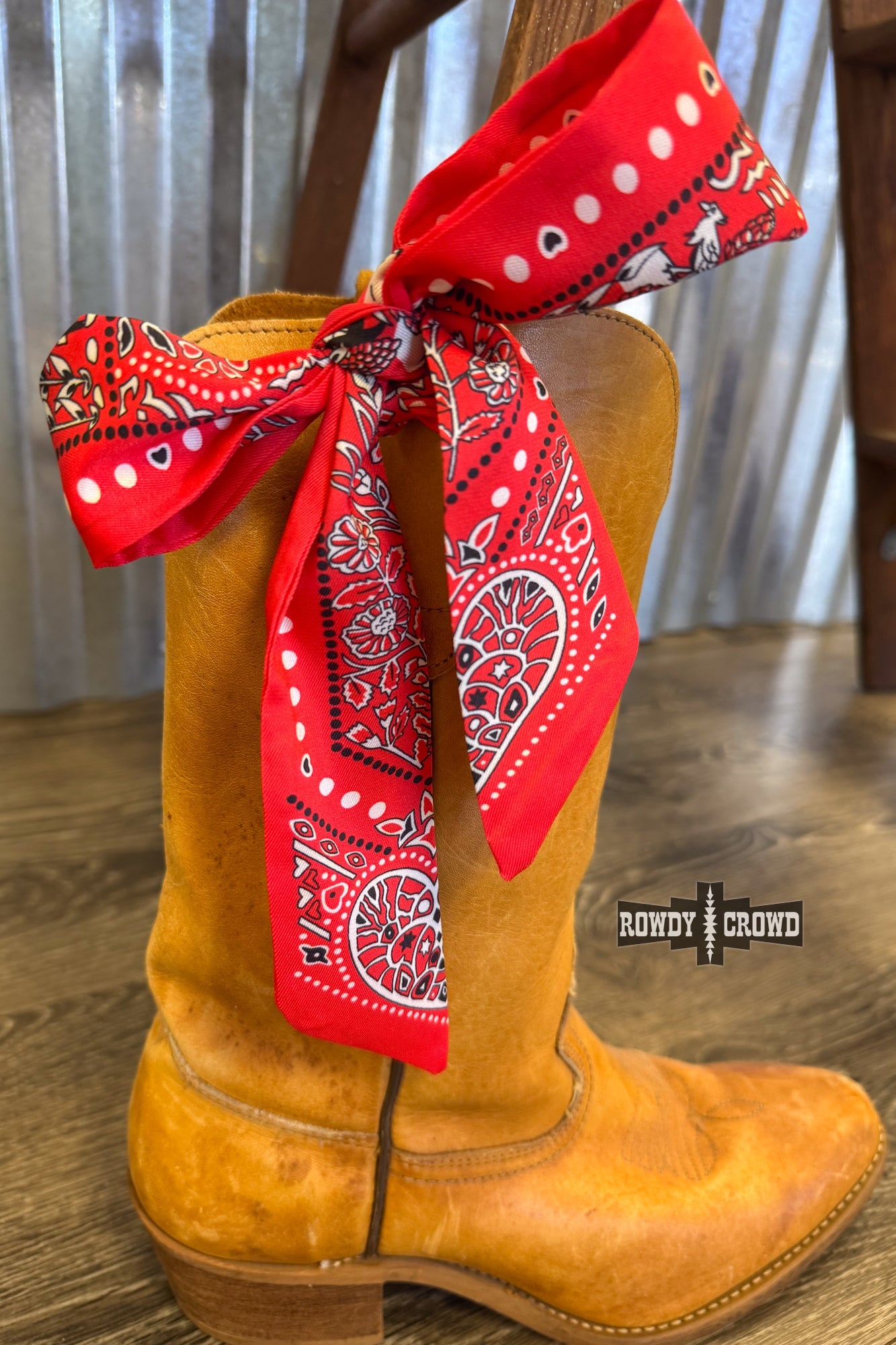 The Texas Tango Twillie brings fiery western flair in a bold, eye-catching package. This silky red twillie features a playful bandana-inspired print with hearts, florals, and classic paisley elements- perfect for adding a little sass and color to any outfit. Its lightweight feel and narrow shape make it easy to tie around your neck, hat, wrist, or bag.