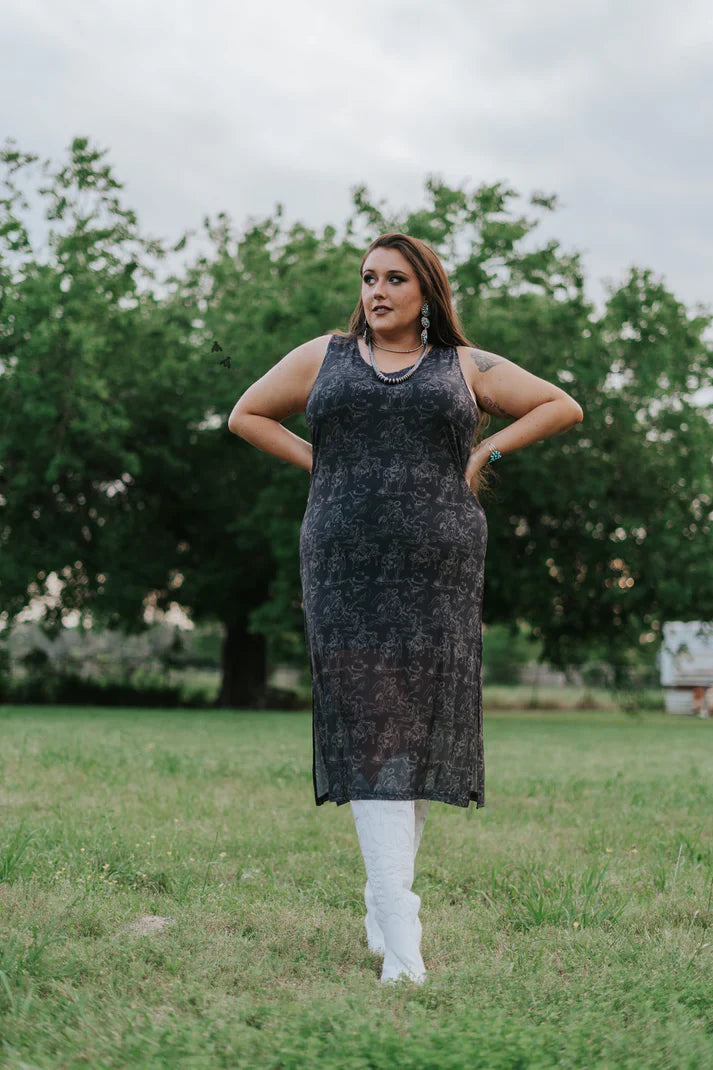 mesh maxi dress.