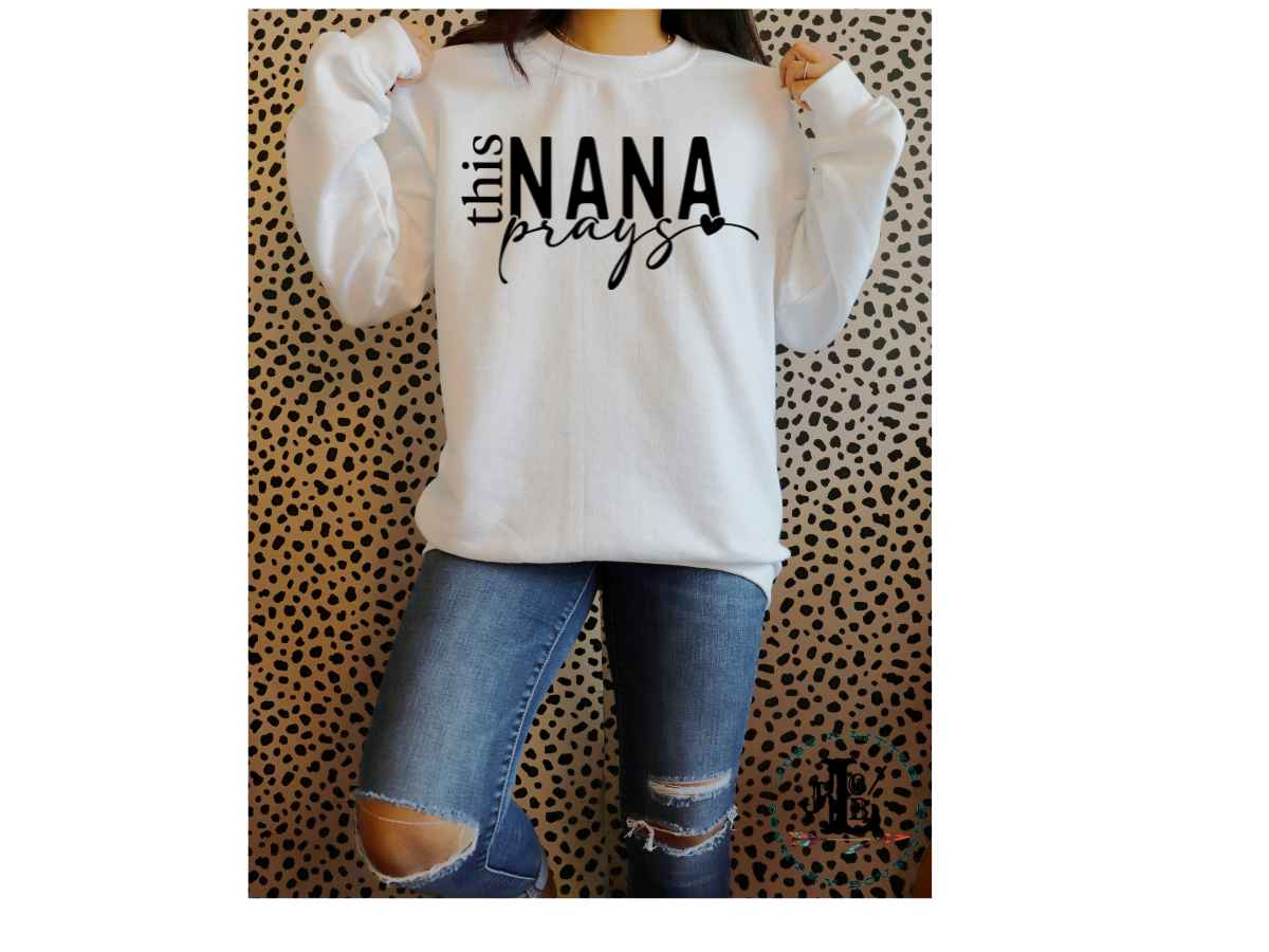 Get ready to show off with This Nana Prays! This soft sweatshirt with DTF print is perfect for reminding everyone that you mean business when it comes to your grandchildren. Available in various colors by request. Don't just talk the talk, let your clothing do the talking for you!