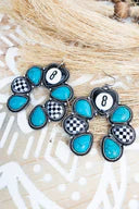 Turquoise & Checkered Cue The Drama Silvertone Earrings