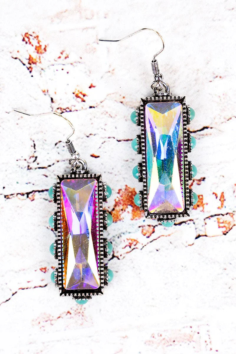 TURQUOISE IRIDESCENT CRYSTAL EARRINGS