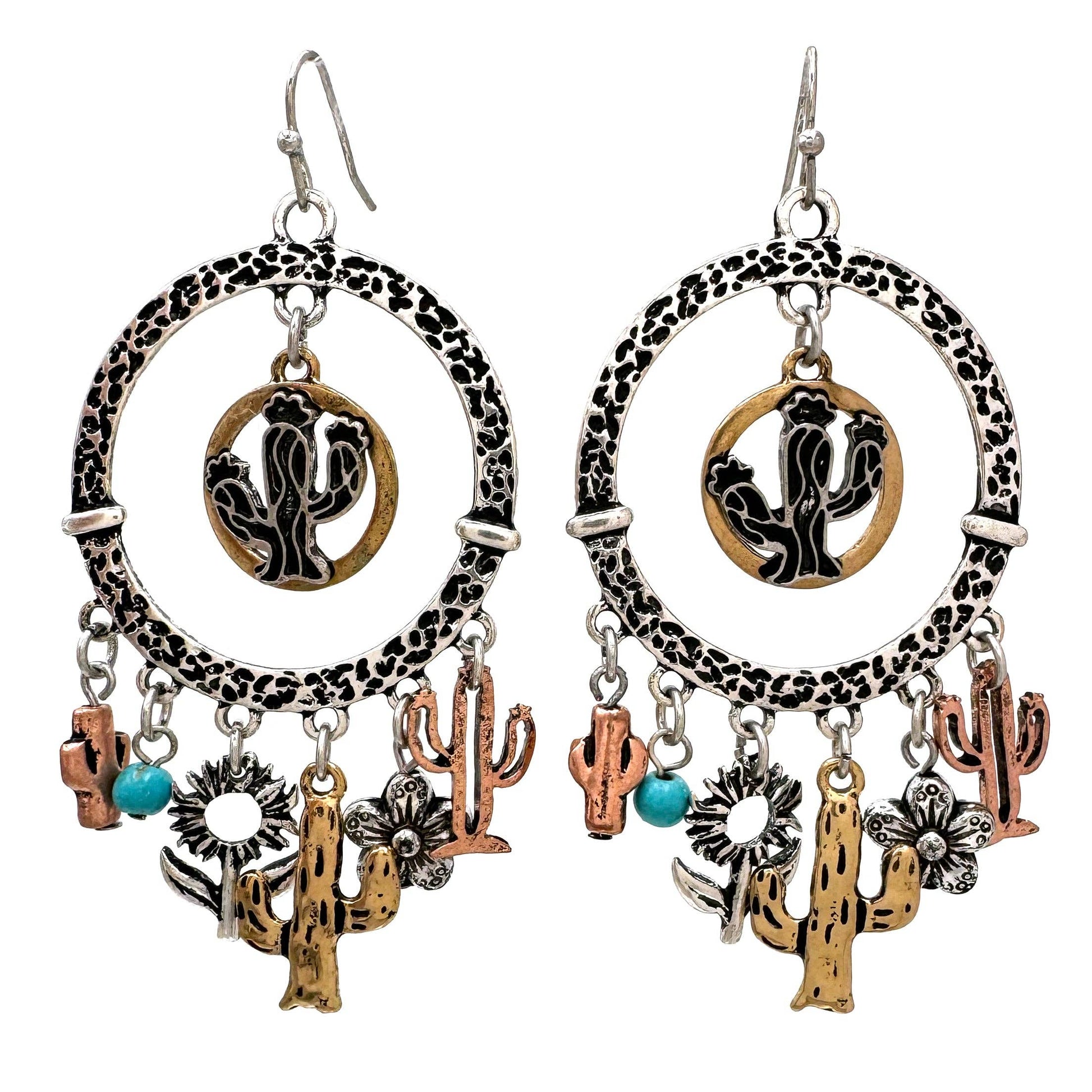 Wildflower Cactus Western Charms Large Circle Earrings.