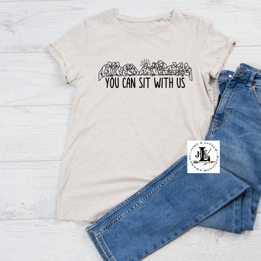 Spread love and acceptance with this soft and comfy t-shirt! Choose from a sublimated or DTF design and proudly display the message "You can sit with us!" Show everyone they are loved and accepted with this quirky and playful tee.